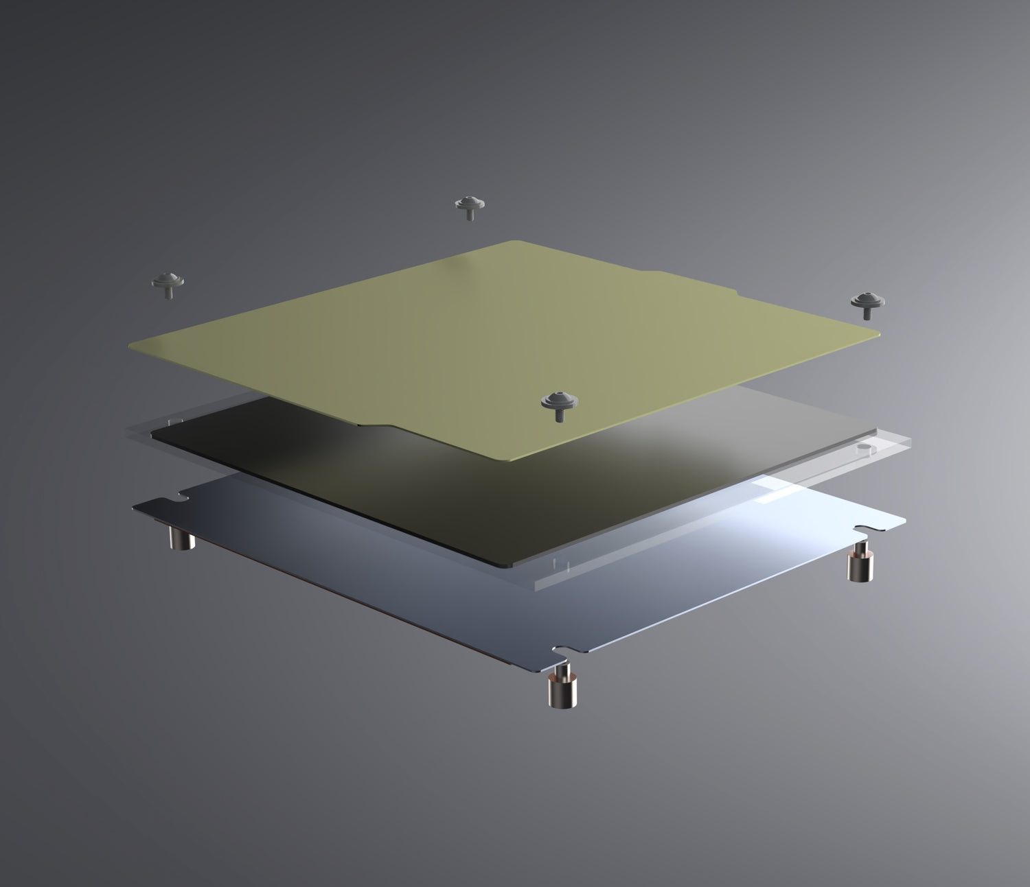- Modular Bed Stack: Configurable for materials needing a glass surface.